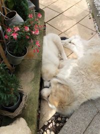 Liebe Bärbel, wir hatten großes Glück beim Autofahren und sind trotz Freitag in keinen Stau gekommen. Die kleine Maus war sehr froh als sie endlich aussteigen konnte. Während der Fahrt war sie ausgesprochen lieb!! Unsere Susi kommt prima klar mit der Kleinen. In der Nacht war sie ein wenig unruhig ( kein Wunder, Mama und Geschwister weg) heute Morgen ist aber alles okay. Sie frist gut und fühlt sich wohl. |